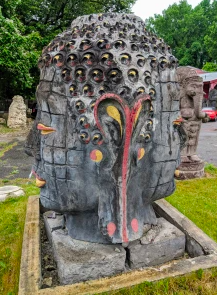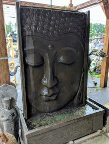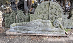 Taking the second driveway down from Shell, we pass an eight-foot Buddha sitting legs folded on a double lotus base staring across the highway. Nearby, a seven-foot, twin-sided, chiseled Buddha head with full yellow and red lips gazes both up and down the road. These giant statues were carved from lava stone in Indonesia. We have arrived at Asia Barong Gallery. I feel at home every time I pull into the parking lot. I am back in Asia.